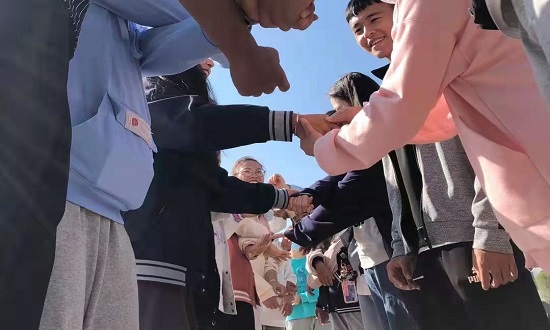结束阶段为信心传送带。同学们排成两列,使用任何方式将一位同学以脚不沾地的方式运输到队列末尾,传送五名同学即挑战成功。活动过程中,同学们热烈讨论、灵感迸发、集思广益。挑战传送时,大家互帮补助,欢乐放松。不仅达到了游戏减压的效果,团体凝聚力也在不知不觉中感染了每一位组员。